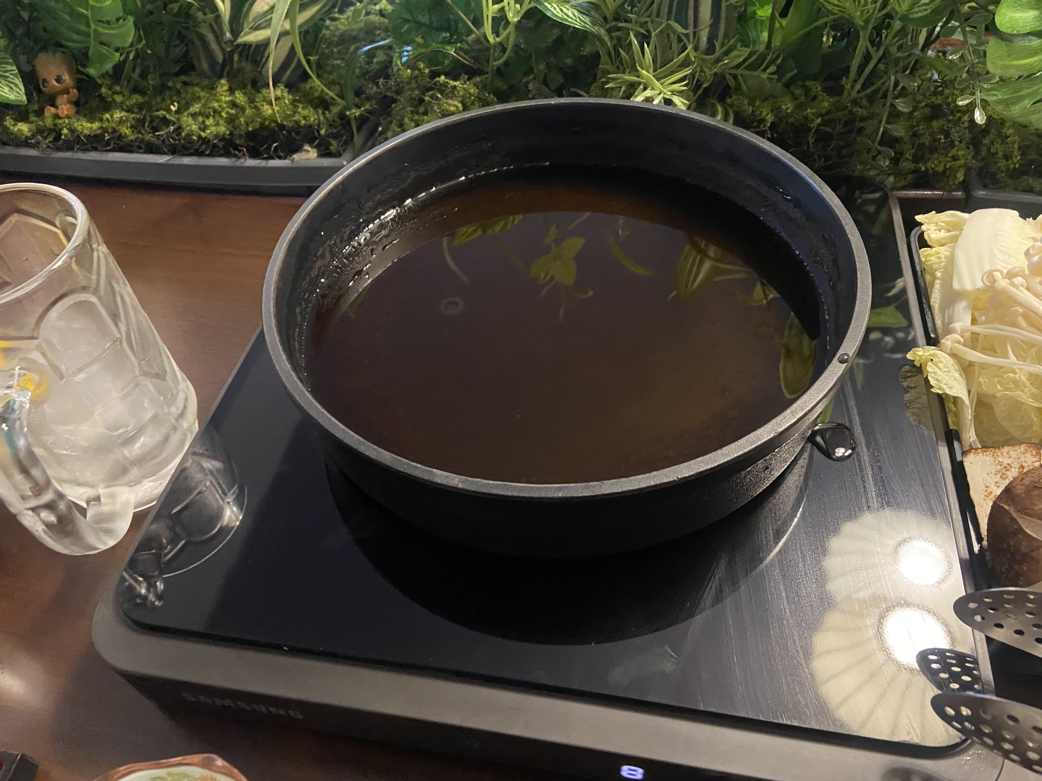 육수를 먼저 부어주시는데 더 필요하면 셀프로 육수를 추가해서 먹을 수 있어요.