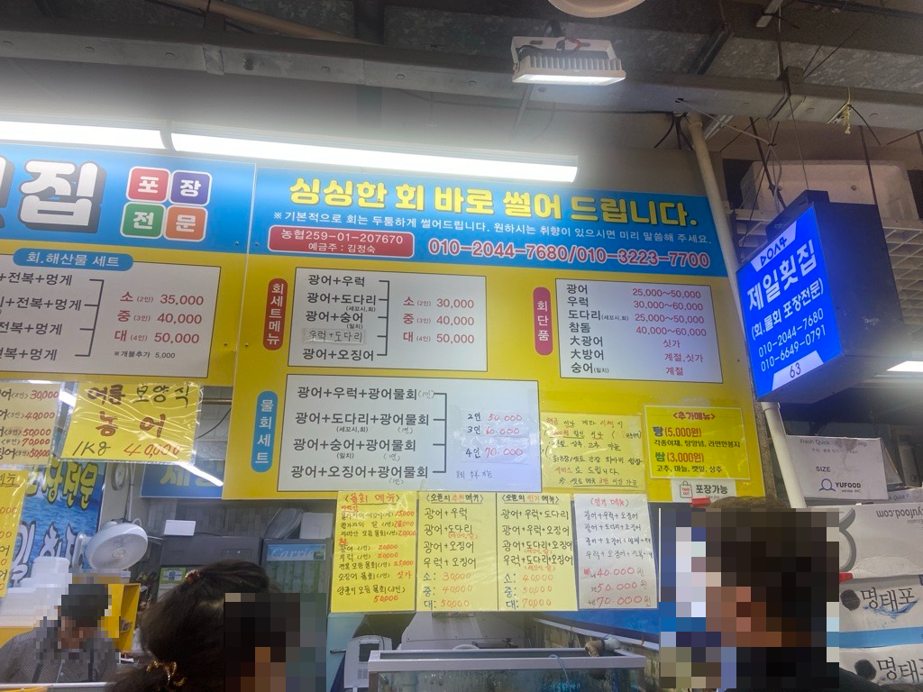 이때 오징어회가 인기가 많았는데 오후 7시 30분쯤 방문하였더니 좀 늦은건지 없는 곳이 많더라구요ㅜㅜ