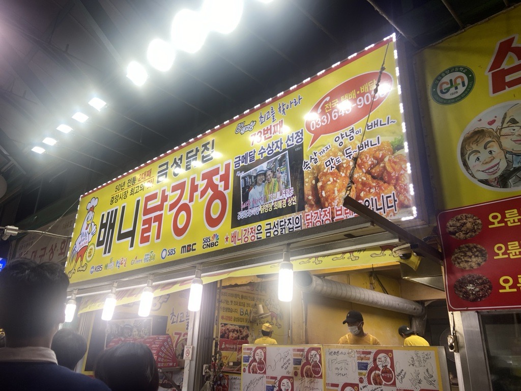 속초에는 중앙 닭강정, 만석 닭강정이 있다면 강릉 중앙시장에는 배니닭강정인가봐요.