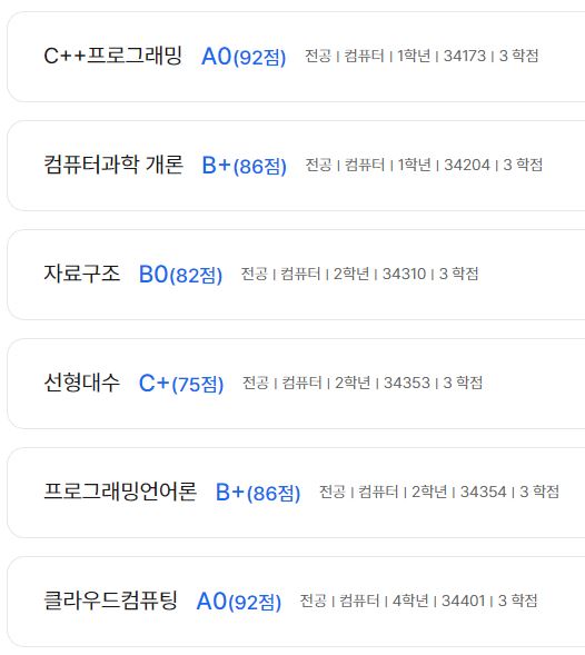 3학년 1학기 때는 편입하고 첫 학기이기도 했고 바빴지만 나름 열심히 공부해서 성적이 괜찮았다.