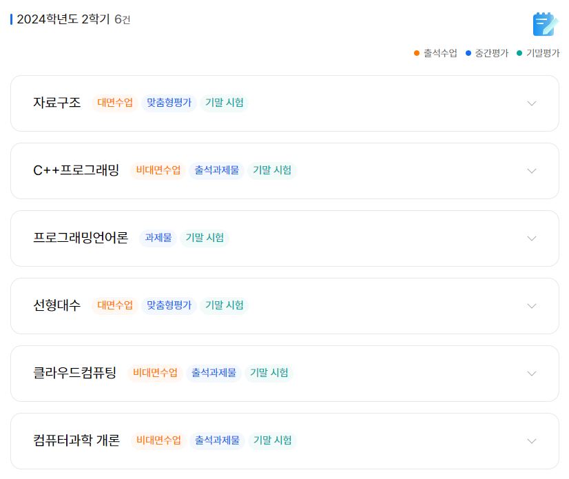 1학기에는 전공 5과목을 들었고 2학기에는 전공 6과목을 선택했다.